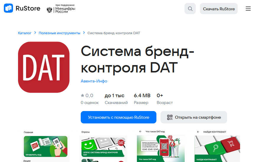 Рады сообщить, что наше мобильное приложение Система бренд-контроля DAT теперь доступно на RuStore! Ранее пользователи могли скачать приложение через Google Play и App Store, но теперь расширенная доступность позволяет еще большему числу потребителей быстро и легко удостовериться в оригинальности продукции.