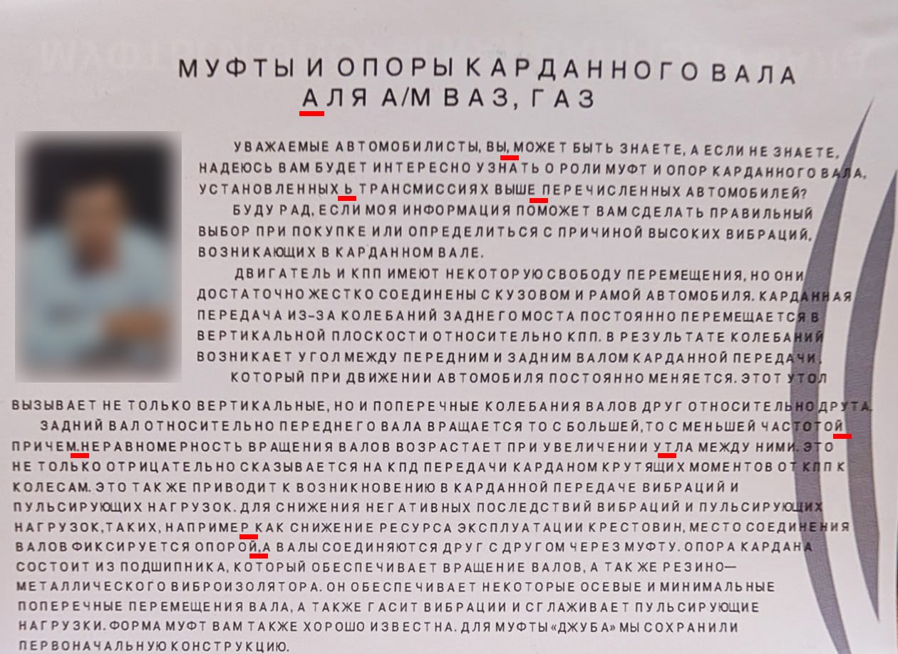 На первый взгляд всё выглядит вполне убедительно: технический текст, фотография, объяснение, как работает узел, зачем нужны муфты и опоры карданного вала, какие нагрузки и вибрации возникают при движении. То есть внешне всё похоже на нормальную сопроводительную инструкцию к техническому изделию. Но стоит начать читать внимательнее, и впечатление быстро меняется.