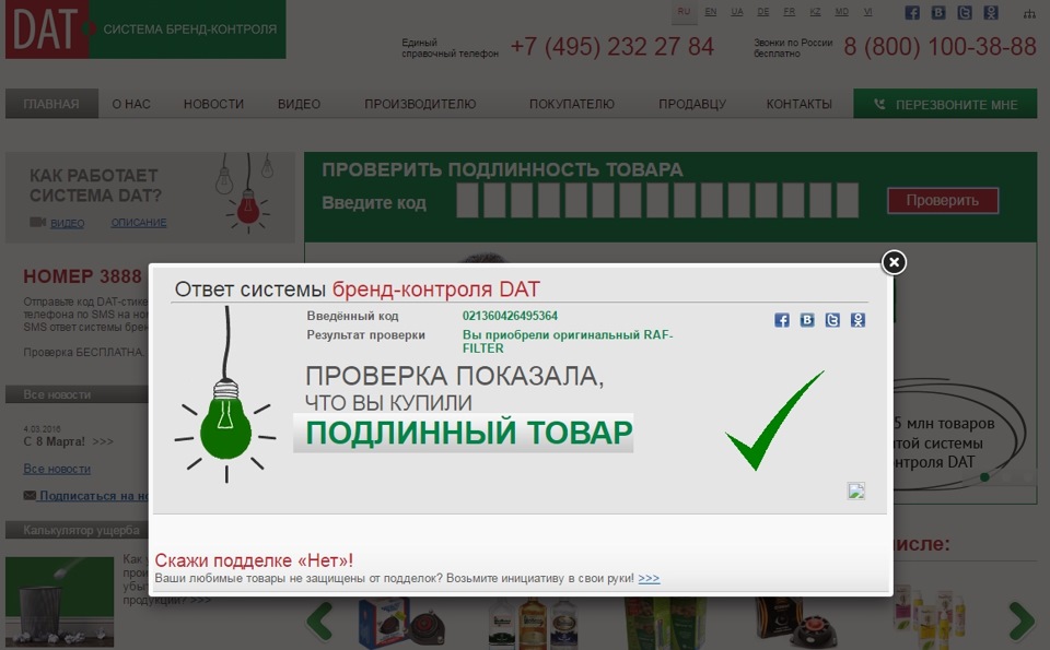 - имеет защиту от подделок (с проверкой по коду на сайте),